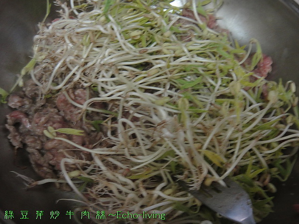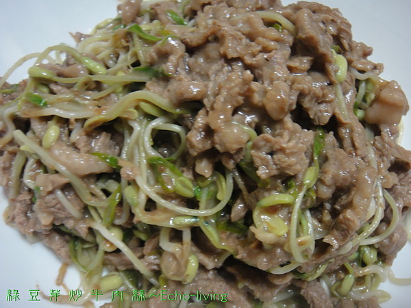 清爽軟嫩的綠豆芽炒牛肉絲上菜。
