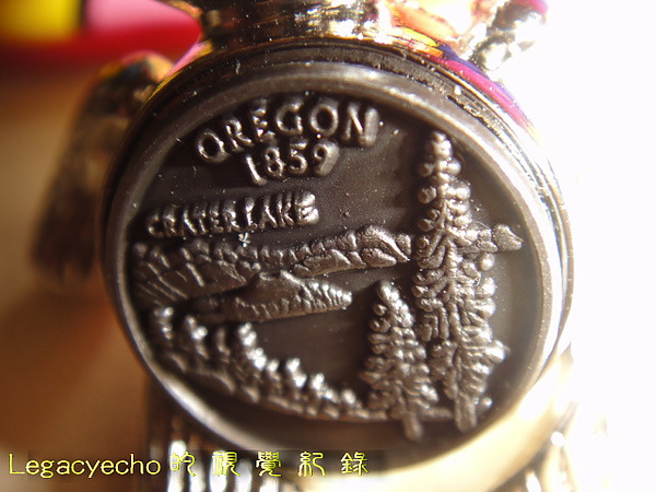 這個鑰匙圈上熊熊的肚子上的Logo是該州最著名的火口湖,湖中有島,不同的季節從每一個不同的角落看湖,都有其特色,天晴湖水沁藍尤其吸引人。它的千變萬化似乎也描繪著這一州歷史更迭中的豐厚面貌。
