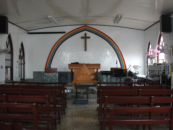 因為早上那個感覺地震的感受,讓我懷念起東山教會的小小禮拜堂,於是決定繞個山路順道去看看。禮拜堂無論外觀或是內部裝潢,仍然與一一八大地震倒塌後重建一模一樣,四十餘年前舊時的記憶一一回到腦海。
