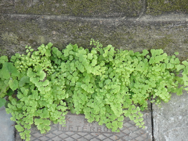 突然發現生意盎然的鐵線蕨,沿著牆角,挨著水錶蓋,擴張生命的寬度。