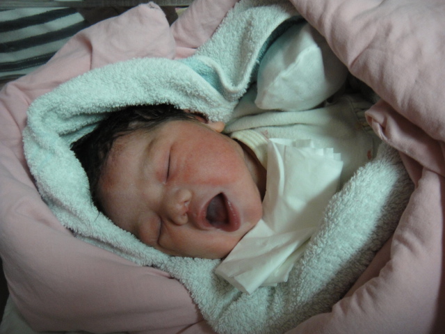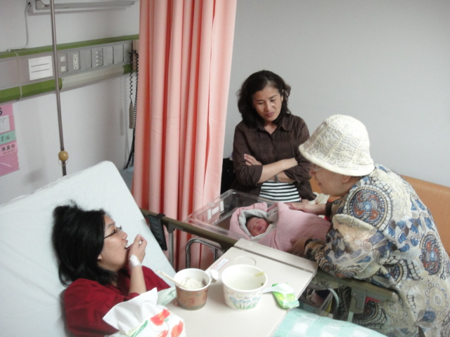 當我來到這個世界兩小時之後,護士阿姨幫我整理乾淨,穿上漂亮的衣服,就將我的小床,放在媽媽的床邊。媽媽肚子餓了,沿穗婆婆幫媽媽準備麵線給媽媽吃,她是爸爸媽媽的媒人婆,當然要參與我的誕生過程啊!