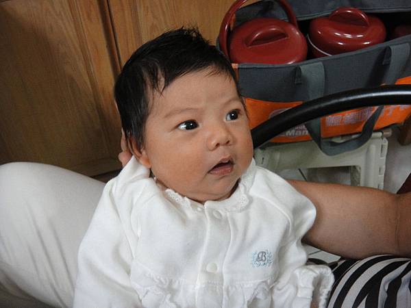 亮亮喜歡大家來看她,她已經認得好幾位婆婆的聲音,沿穗婆婆幾乎每天抽空來看亮亮,只要聽到沿穗婆婆的聲音,她就會想辦法睜開眼睛和沿穗婆婆玩一玩,咕嚕咕嚕一下。