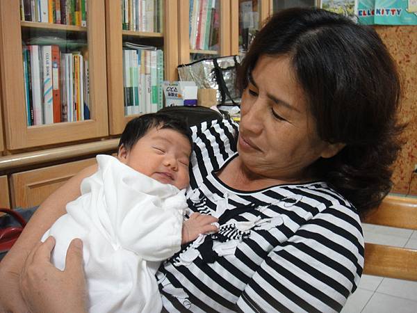 打完招呼後,又乖乖的享受沿穗婆婆的懷抱。