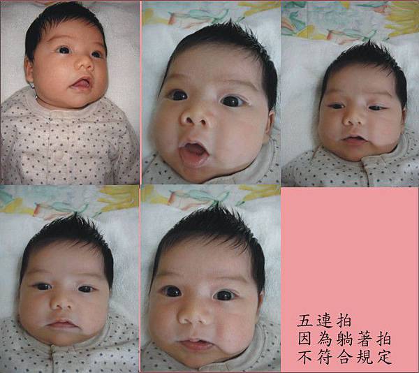 要拍嬰兒的護照照片真是浩大工程,護照照片的規定頗多,瞧!我們費了九牛二虎之力,全部無法符合規定。