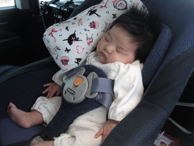 下車後等阿公停車時,亮亮還被媽媽抱在懷裡睡著呢!