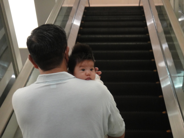 上了電扶梯更是瞪大眼睛瞧著四周環境的變化。