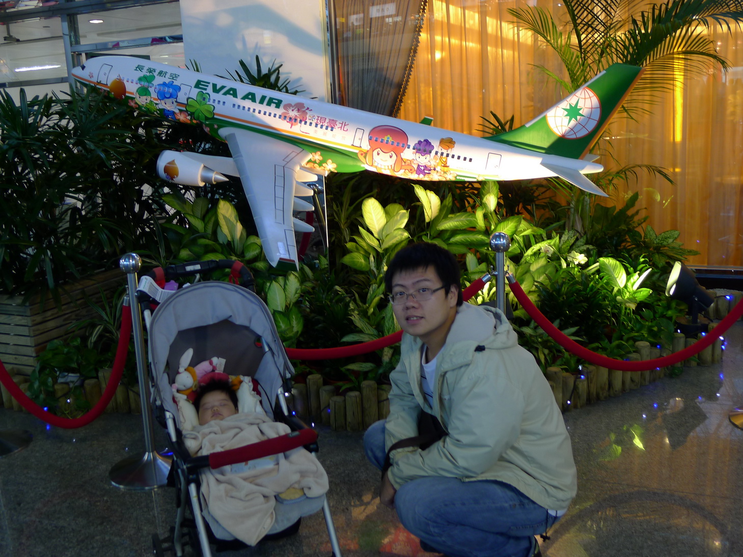這一次的旅程由於是早發的班機,前一晚必須先搭高鐵北上,住在桃園的飯店一夜,第二天早上七點前要到機場,由於有網路預辦登機手續,到機場主要是完成行李託運,整個流程由於事前揣摩演練,亮亮的表現安靜沉穩,沒有為客艙中其他的客人帶來不便。
