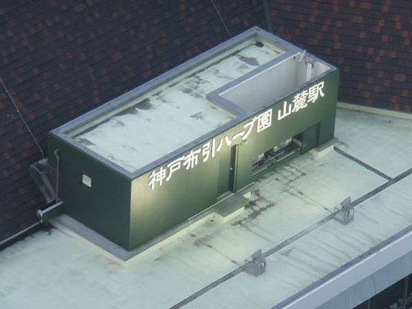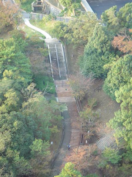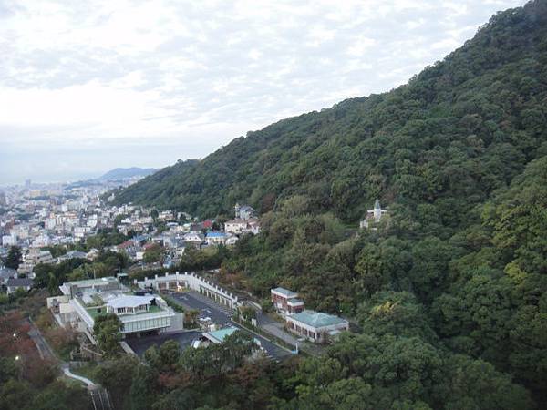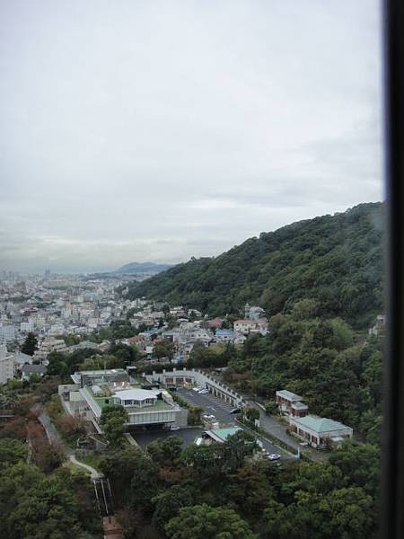 從這個窗口,可以望見通往神戶市立布引香草園的纜車站,白天纜車就這樣上上下下穿梭在林梢。