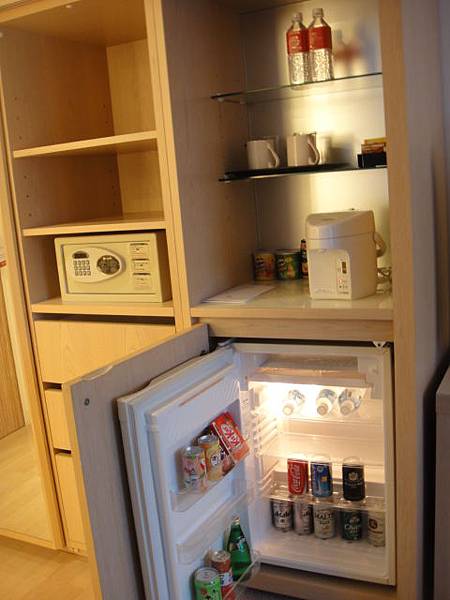 大致設備如一般飯店,有些免費供應的茶包咖啡包,也有一些要計費的飲料零食。免費使用的網路線。