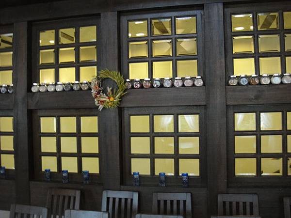 牆上擺滿一瓶瓶的食用香草。到處都可以看到花圈的布置。