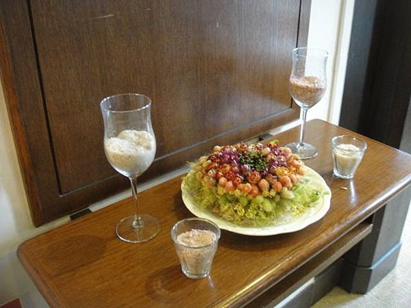 進餐廳後隨即立刻看到以當季蔬果及各種調味香草鹽的裝飾。