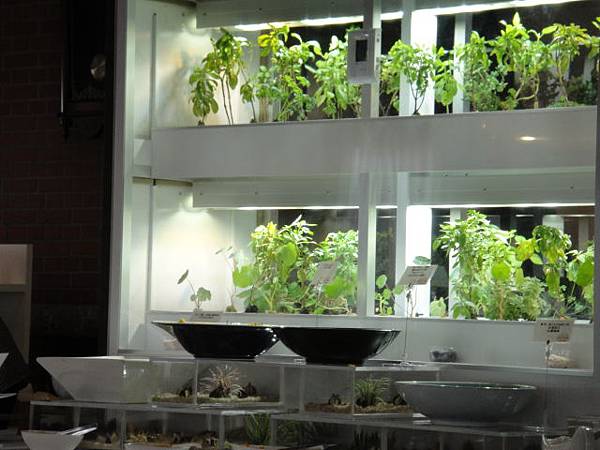 冷食台上以溫室箱種植香草,說明了這裡的料理都是以香草提味。