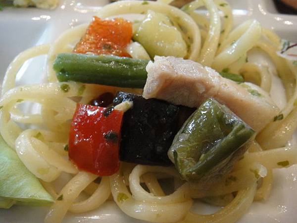 靠牆的內側是熱食區,本月份主打香草義大利麵。