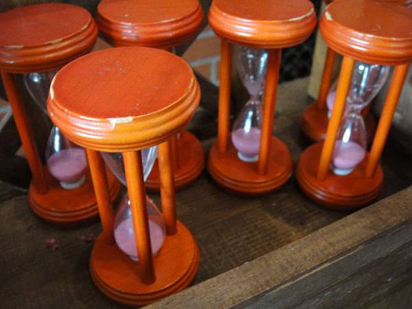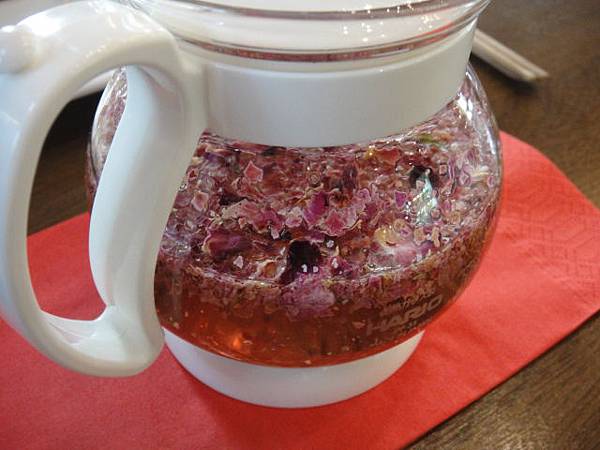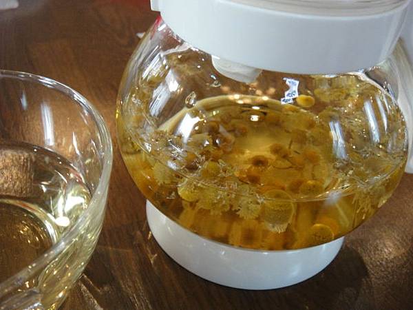 櫃子的最上層有8種花草茶,自己挑選,利用下方的玻璃壺自由沖泡,也提供沙漏給你量沖泡時間。