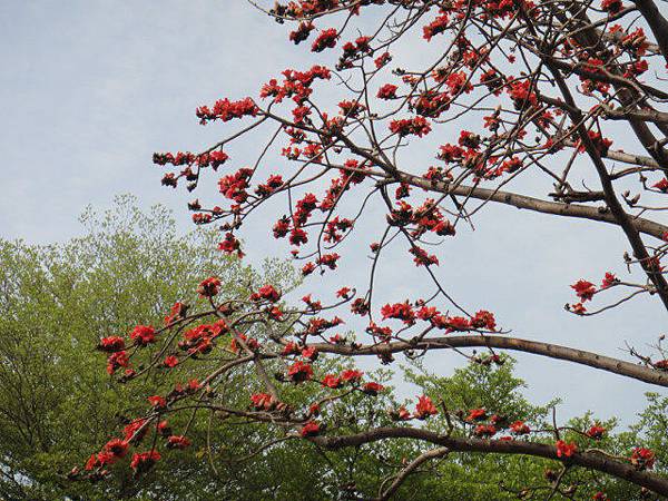 沒有葉片襯托的你們,壯麗間卻隱含著孤獨,邀來新葉初放的小葉欖仁,做你們的背景,讓你們在綠中潑上陽光的亮橘,嫩黃。