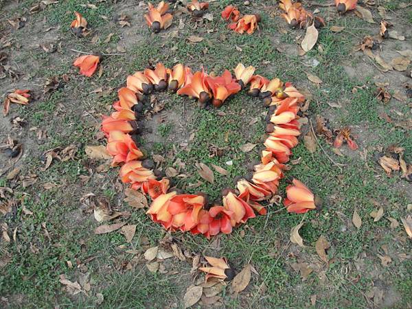不小心踩踏著掉落的木棉,腳底有著汁液流出唏縮啜泣聲,低頭心驚!