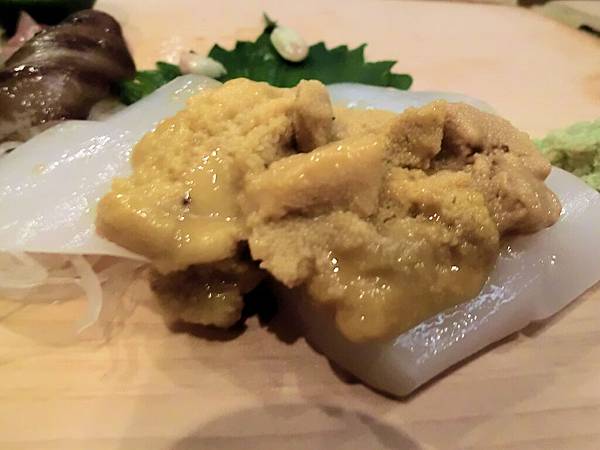 接下來吃生花枝與海膽,這裡的海膽與澎湖海域的口感與鮮甜略有差別,讓我極度鍾情。