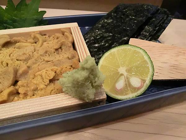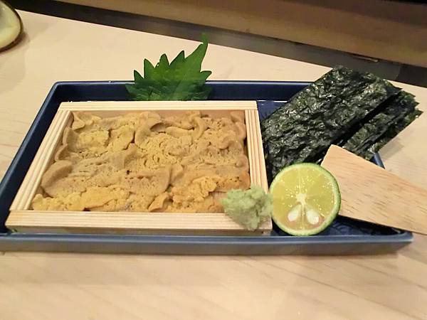 炙燒干貝後,就要用握壽司了,表哥為了我喜歡吃海膽,特別央請師傅為我預備一整盤的海膽,所以這算是同場加映版。