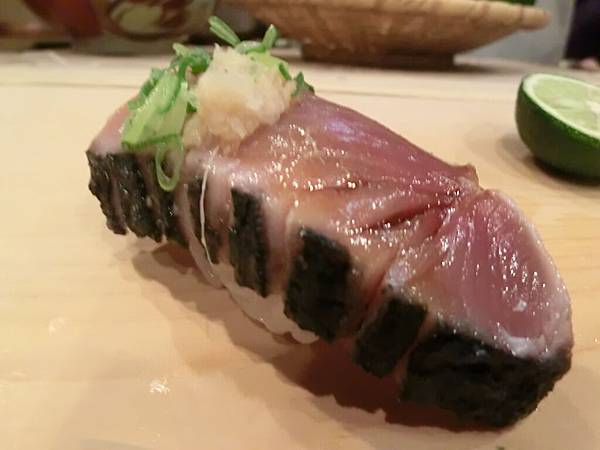 炙燒鮪魚中腹佐薑蔥末。