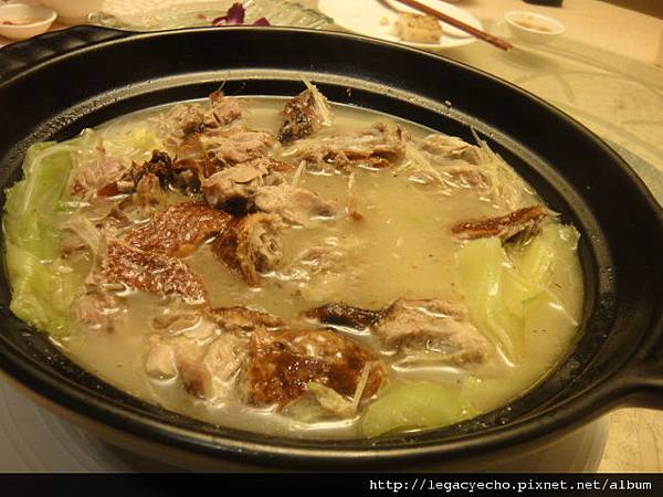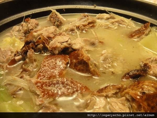 去了皮肉的鴨骨,用大火煨湯,逼出鴨骨中的鮮美湯汁,鴨湯呈濃郁的奶白色,再以芥菜收入鴨油,讓芥菜滑潤可口,並增加湯頭的濃醇甘甜,芥菜鴨骨湯完全不加味精與鹽,美味又養生。