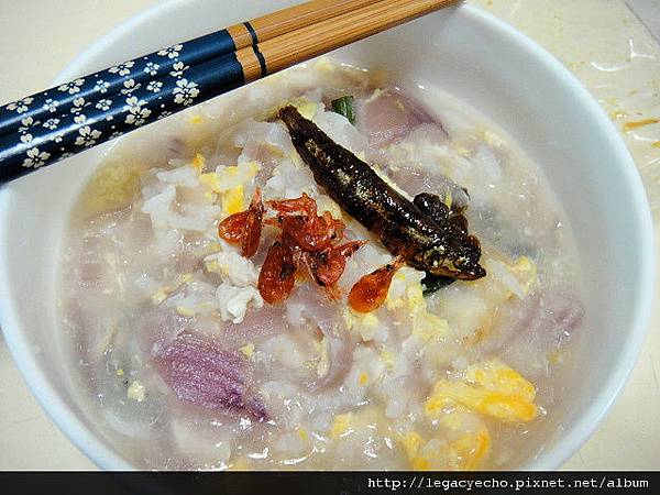 也煮了洋蔥蛋花粥...