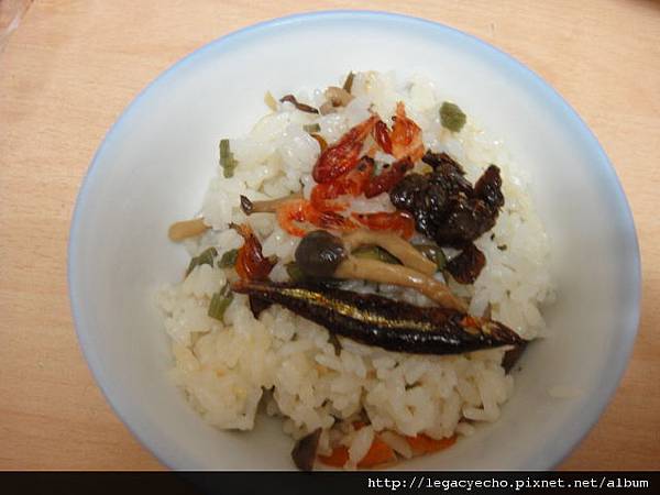 放上一隻醬煮小魚,一小搓甘味蝦米,幾粒蜆仔,很下飯,大大竟然在不注意間吃上好幾碗。