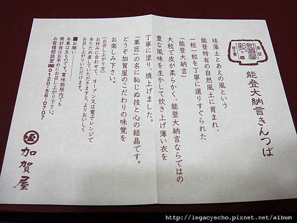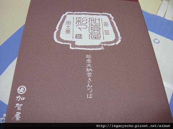黑田夫人正在學習中文,她欣賞言承旭的歌聲及戲劇,我們為她收集了一些言承旭的作品。黑田先生知道我也正著迷日劇「花嫁暖簾」,劇中有一段是介紹能登半島和倉溫泉的加賀屋溫泉旅館,在台灣北投開設分館。黑田先生的老家在能登,於是特別為我們預備加賀屋的名產きんつば(金鍔)。