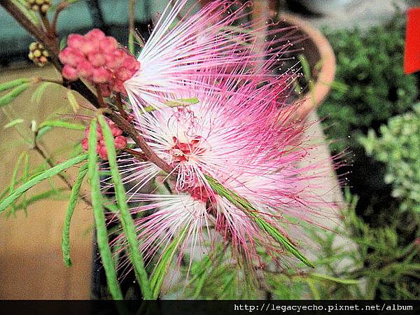 我盯著小粉撲花,想起了日晚倦梳頭的惆悵,是否該請小粉撲為自己了臉頰再上顏色。