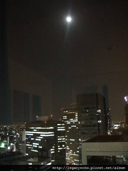 日本OSACA STATION CITY 南出口 HOTEL GRANVIA 24樓的窗望見一輪明月,隔天我就要離開這個城市。