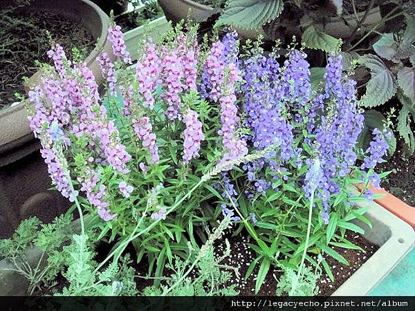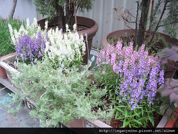 盆子裡的薰衣草已露出疲態,偷得一點空檔,趕在梅雨期裡種下天使花。