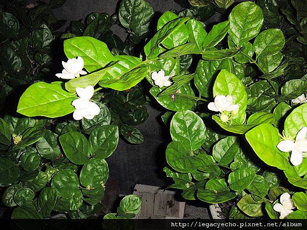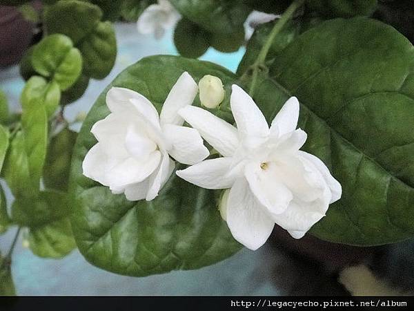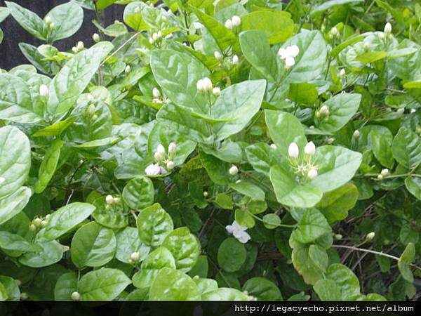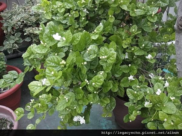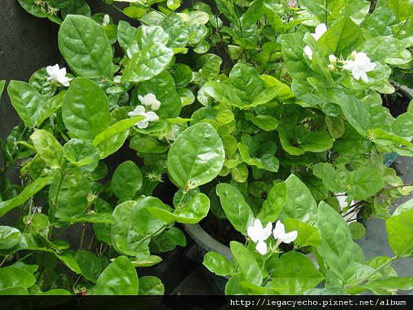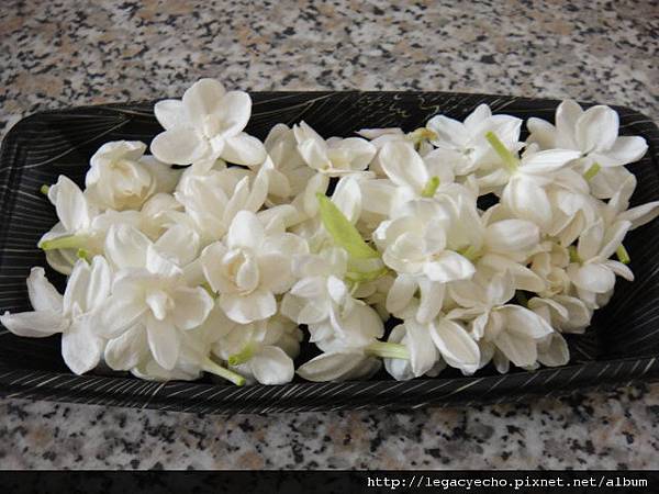 茉莉綠葉成匹匹絲帛,花開如水珠飛濺...
