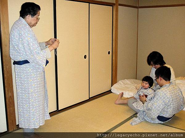 亮亮看爸爸、爺爺、阿祖,大家都換上浴衣,覺得好新鮮。