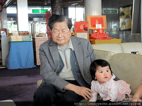 阿祖拿出相機幫亮亮拍照,亮亮好得意。