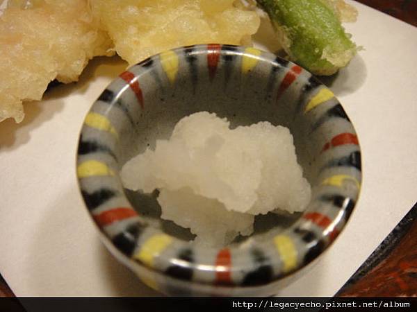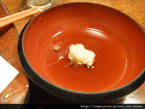 裝蘿蔔泥的小缽與柴魚醬汁的漆碗。