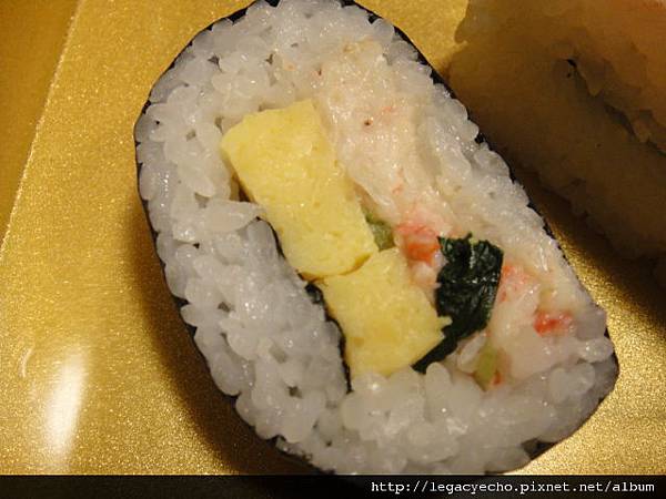 太捲壽司中間是玉子燒及蟹肉
