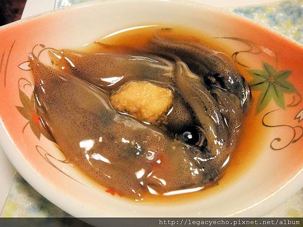 三款前菜,其一是當季生鮮小墨魚醬油漬