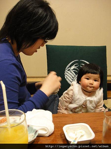 亮亮吃了一盒嬰兒食品起士馬鈴薯粥,正等著吃蒸蛋。