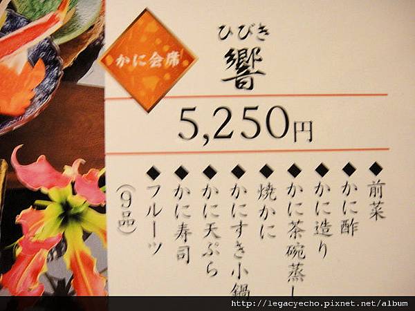 關於會席料理的菜單請參考官網: かに会席