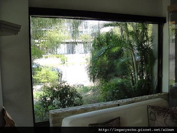 這一窗的水簾,襯著窗外的綠籬,將酷熱阻斷。