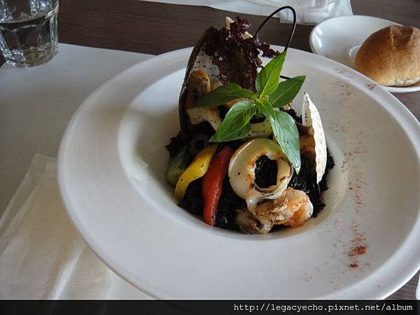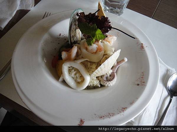 義式總匯海鮮燉飯,上面一盤是黑醬(墨魚醬汁),下面這一盤是白醬。