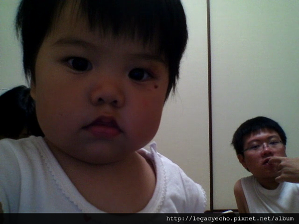 今天晚上亮亮又用大眼睛對阿嬤放電了...