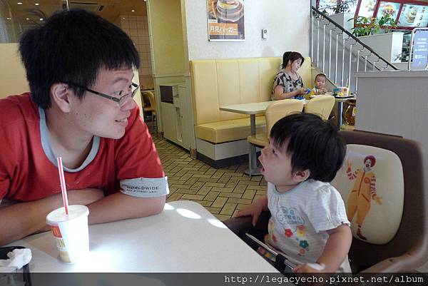 今天是Jay三連休假期,亮亮可以和爸爸媽媽到麥當勞吃早餐。