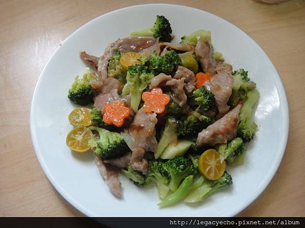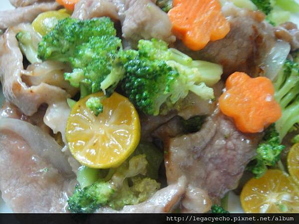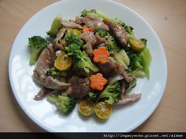 2012-09-22午餐上了一道營養又下飯的綠花椰金桔松坂肉。