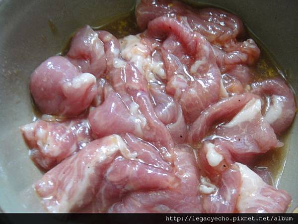 松坂肉用五六個金桔擠汁、一點二砂糖、一湯匙醬油、少許梅子粉醃漬。下鍋前抓一點太白粉。