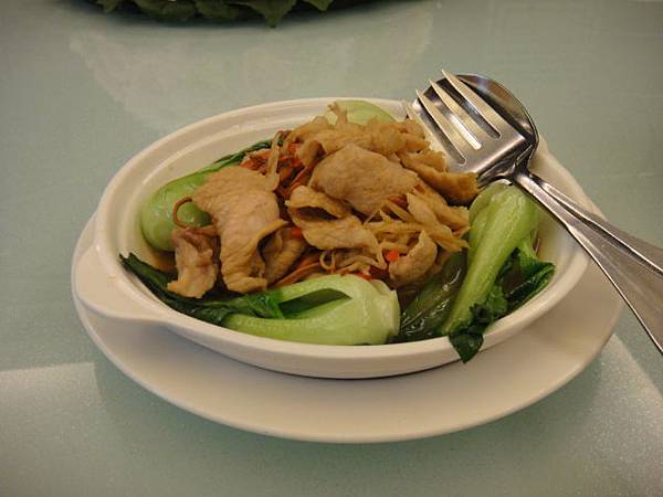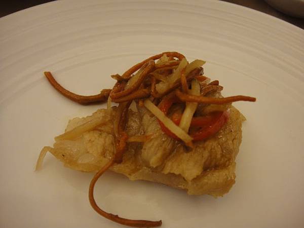 這一道湧蟲草松坂肉很美味,湧蟲草其實算是一種特別的菇類,樣子有點像金針菇,卻又比金針菇有爽脆口感,搭配松阪豬肉片非常契合。