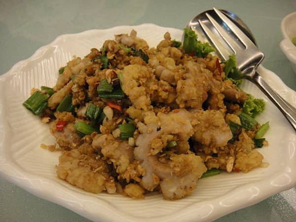 鹽酥烏魚腱,平日要自己做來吃不易,馥桂廳的主廚處理這道烏魚腱恰到好處,讓烏魚腱有Q感。