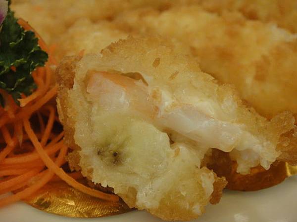 甘蔗蝦常吃,香蕉蝦少見,這道香蕉蝦大家都讚不絕口。