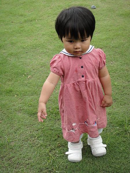 亮亮媽媽怕亮亮的膝蓋磨破皮,還加了一件長褲保護。