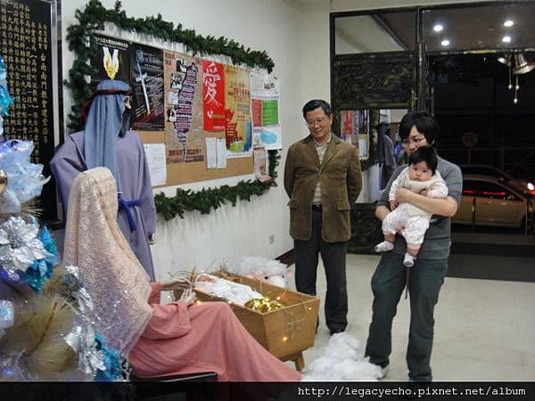 其中最吸引亮亮的部分是宗教繪畫,我們猜測大概是去年聖誕節亮亮約5個月大時,曾經帶亮亮去南門教會看聖誕布置的裝置藝術,讓亮亮留下印象,以至於繪畫中出現相似服裝顏色即吸引亮亮的目光。