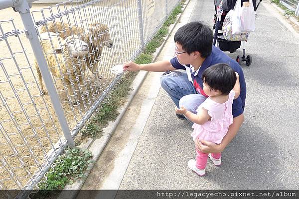這是亮亮第一次參觀動物園,除了家裡養的小白兔外,這是亮亮這麼近距離與動物接近,首先買了動物園販售餵食動物的餅乾,餵食小羊。